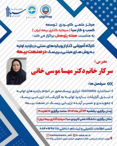 کارگاه آموزشی با عنوان «گذار از رویکردهای سنتی در بازدید اولیه به روشهای مبتنی بر ریسک در صنعت بیمه» با تدریس سرکار خانم دکتر مهسا